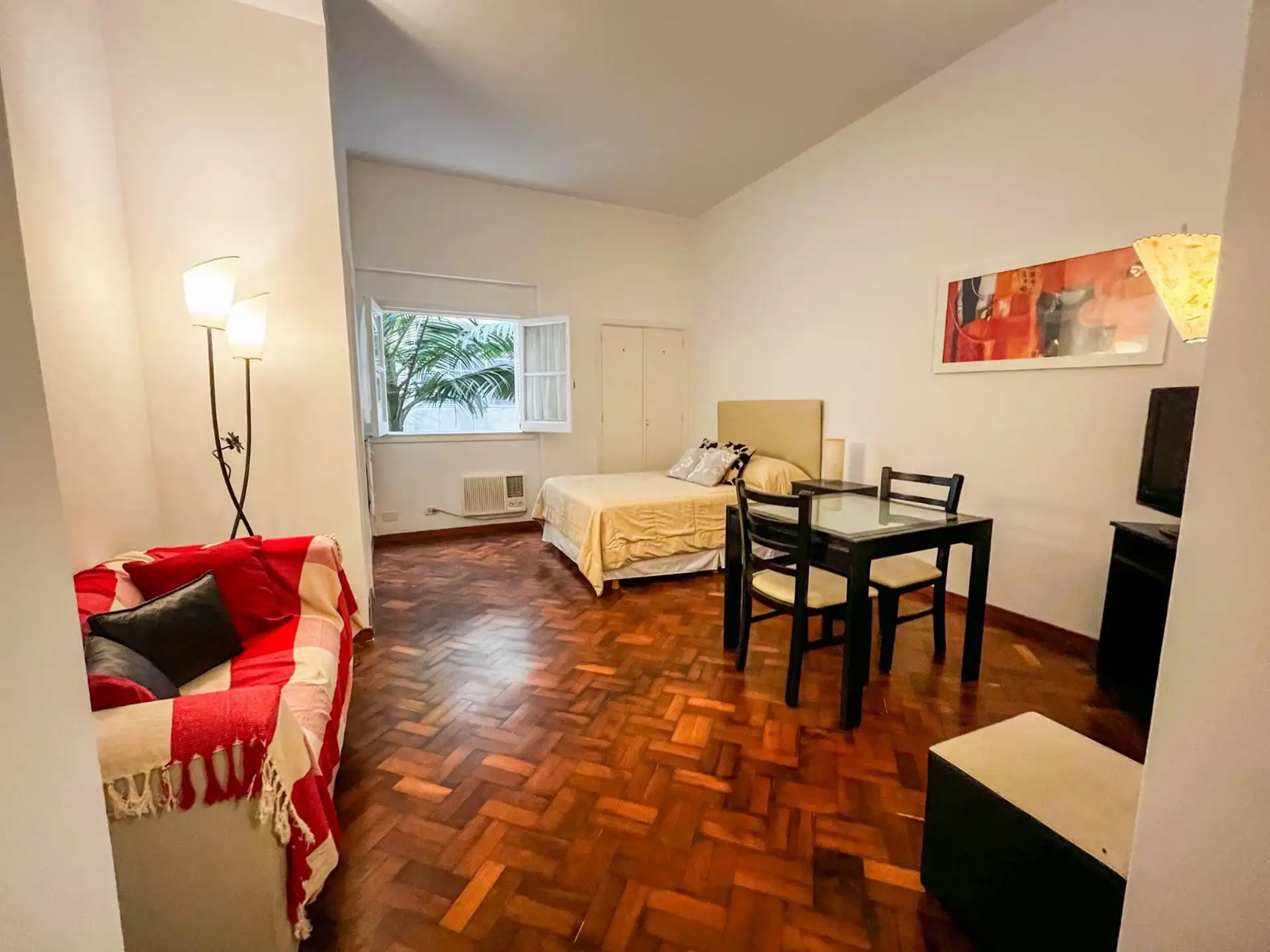 Departamento - Recoleta - Amplio monoambiente Amplio Monoambiente en el corazón de Recoleta. Equipado con Sommier doble, sofá, TV LED con cable, amplio placard, calefacción por panel eléctrico y aire acondicionado. La cocina, separada, equipada con microondas, heladera bajo mesada, tostadora, cafetera, vajilla para 4 personas, pava eléctrica, hornallas eléctricas y horno eléctrico. El baño es completo. secador de pelo, plancha e Internet WIFI. Se provee ropa blanca. NO MASCOTAS. No fumadores. No niños. Frente al edificio hay garage, lavadero y supermercado a una cuadra. Ubicado a media cuadra de Av. Callao, A una cuadra de Av. Gral. Las Heras. A dos cuadras del Cementerio de La Recoleta. A cinco cuadras de Av. Del Libertador. A cinco cuadras de Av. Santa Fe. A cinco cuadras de Av. Pueyrredon. A cinco cuadras de Av. 9 de Julio. Zona de Comercios, Restaurantes y Bares. Numerosas Líneas de Colectivos. Subte Línea D Hospitales SANATORIO AGOTE SANATORIO ANCHORENA S.A. Contrato de hasta 3 meses con opción a renovar. Estará a la venta con lo cual se debe permitir para mostrarlo coordinando las visitas previamente. No niños. No mascotas Incluye expensas, agua, wifi. TV por cable. Luz no incluida. Consultar por estadía semanal de ingreso inmediato. No incluye comisión inmobiliaria. Limpieza de salida: usd 15 Accesible: No (ley 5115). Todas las operaciones inmobiliarias son objeto de intermediación y conclusión por parte de "Rapaport Bienes Raíces ", Colegio Profesional Inmobiliario Matrícula N6341.
